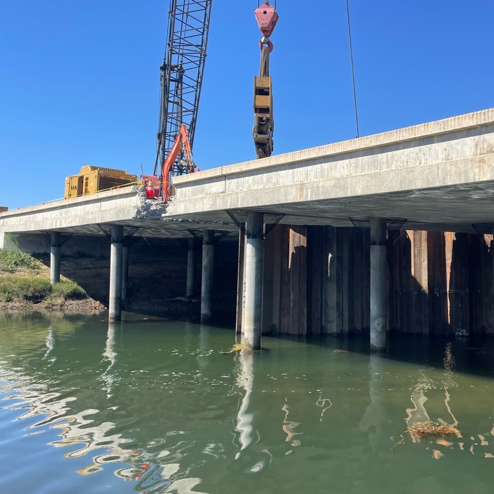 The bridges on US 101 were built in 1946/widened in 1989. The new bridge will meet current design and safety criteria. The contractor for this $20 million project is M.C.M. Construction, Inc. of North Highlands, CA. It is expected to be complete in June 2026.