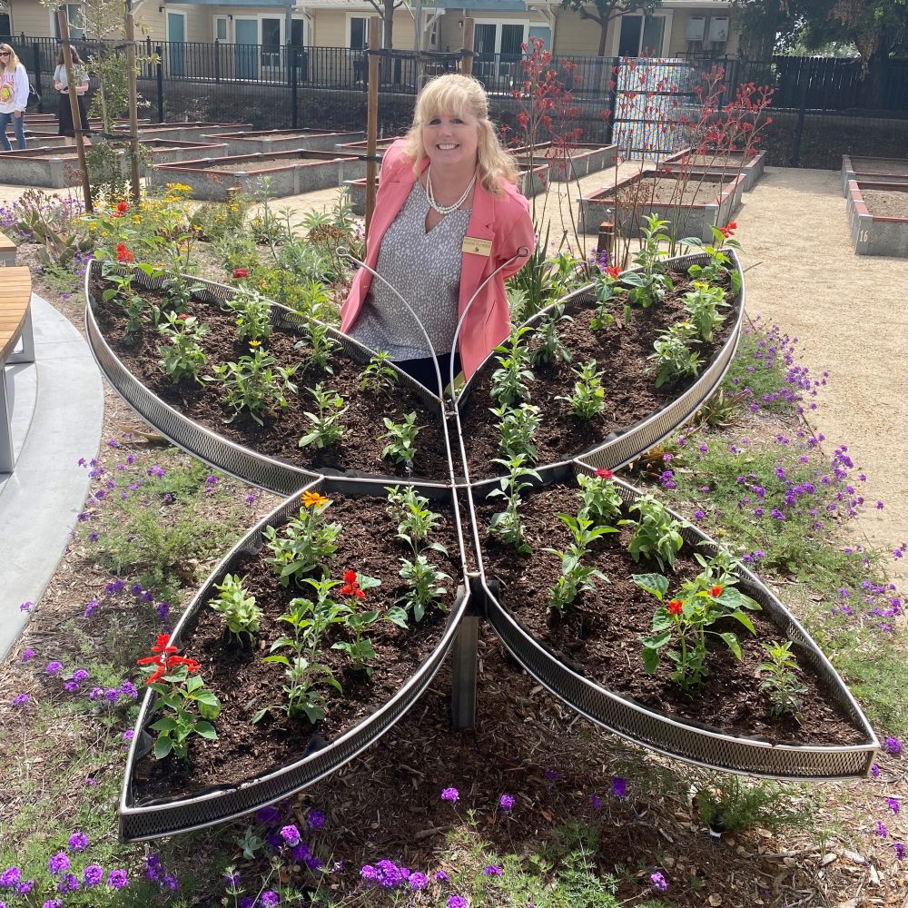 Pictured above: Parks and Recreation Manager JoAnne Plummer with the butterfly flower bed at Armitos Park