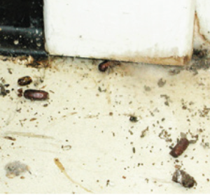 - Cockroach droppings (frass) attract more roaches and other pests. Clean up frass with soap and water. Then, use a hand duster such as a Pest Pistol to blow diatomaceous earth (DE) or boric acid powder into cracks, crevices, and other openings in walls, under large appliances, or in areas where you have found cockroach nests. Be sure to use DE sold for pest control, not for pool filters. When applying DE or boric acid powder, protect your lungs and eyes by wearing a dust mask, gloves, and safety goggles. Apply a very light coating because cockroaches will avoid piles of dust. It doesn’t take much to kill them.