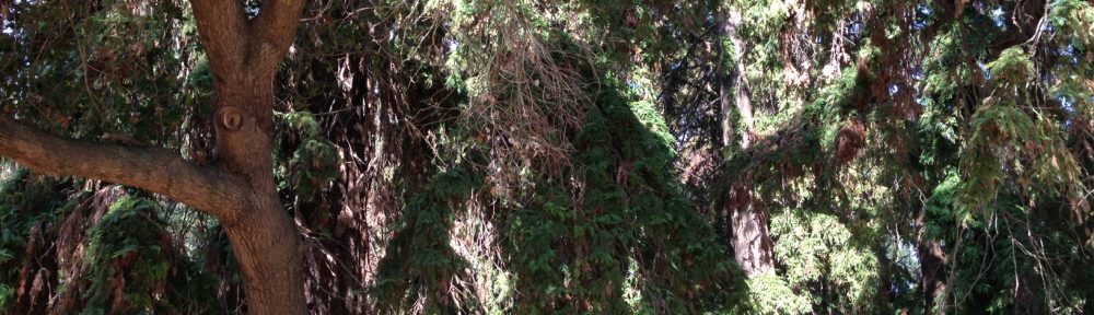 Since the redwoods are growing out of their native habitat, and we are in a significant drought, the trees are not getting the necessary water. If they were in their native habitat in Oregon or Northern California, the trees would be obtaining more moisture from the air. In order to mimic those conditions, the City is now spraying water up into the trees. The irrigation system has also been modified to improve water distribution.