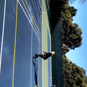 Today, the courts at Evergreen Park are designed for both tennis and pickleball players. The west court is designated as priority for tennis players, and the east court (with added yellow lines) serves as priority for pickleball players. To keep the pickleball court nets in good condition, they are secured in a locked box at the courts. Pickleball players desiring access to the portable nets will need to participate in a training and complete a volunteer application before receiving the lock combination. Interested parties can contact JoAnne Plummer, Parks & Recreation Manager, at (805) 562-5505 or jplummer@cityofgoleta.org.