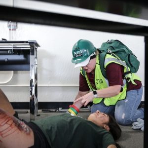 Goleta resident, Melody O’Shock who participated as a victim volunteer said she is glad she spent some of her Saturday learning how to be better equipped during a disaster. She said, “The biggest thing I learned today is that you don’t have to be a physician or nurse to respond during a disaster. You can be a lay person and respond to help.”