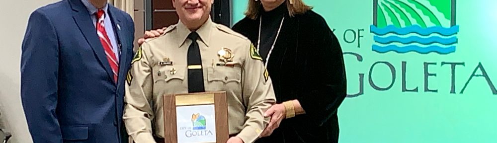 A standing room only crowd turned out to the December 3, 2019, Goleta City Council meeting to honor outgoing Community Resource Deputy (CRD) Dave Valadez. During his six years as the City of Goleta’s CRD, Senior Deputy Valadez had a tremendous impact on the City and made a number of significant contributions.