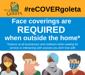 In an effort to stress the importance of wearing face coverings to minimize the spread of COVID-19, the City of Goleta is launching the #reCOVERgoleta campaign. The goal of the #reCOVERgoleta slogan is to capture the need to consistently wear face coverings to protect each other and allow our community to safely get back to business. The campaign supports the orders issued by the Goleta City Council, Santa Barbara County Public Health Officer, and Governor of California, in regards to face covering requirements.