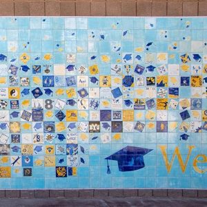 “The Dos Pueblos community really stepped up to make this project a reality. We raised over $10,000 in less than two weeks. In addition, Tileco donated over 1,000 tiles, local artist Scott Boger painted the crest and lettering, Eliesa Bollinger, our high school ceramics teacher, spent the summer firing tiles, and local craftsmen and alumni, Clayte Robinson and Jorge Lorca, did the installation” stated Rechelle Ringer, DPHS Foundation board member and parent of a 2020 graduate, “We had staff, parents, students and community members all working on different aspects and the end result is a lasting tribute to the class, the school and the community. We couldn’t be more pleased with the results.”