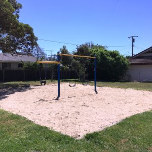 - Winchester 2 Park will have the swings replaced and expanded as well as play features for 5 – 12-year-olds and 2 – 5-year-olds. This playground will also include a picnic table to replace the existing ones and benches that will be placed under a shade structure. The ADA walkway will extend from Calle Real to the playground and will be identified as an accessible route. This location will also have the broken backstop replaced and have the four-foot chain link fencing removed and replaced with six-foot vinyl coated steel chain link fencing. Changing the fence will address the concerns expressed by residents about balls heading into the busy road. Lastly, to address the flow of water draining into the yards of the neighbors on Warwick Drive, a small berm will be created with concrete curbing to direct the water towards the natural flow of the park.