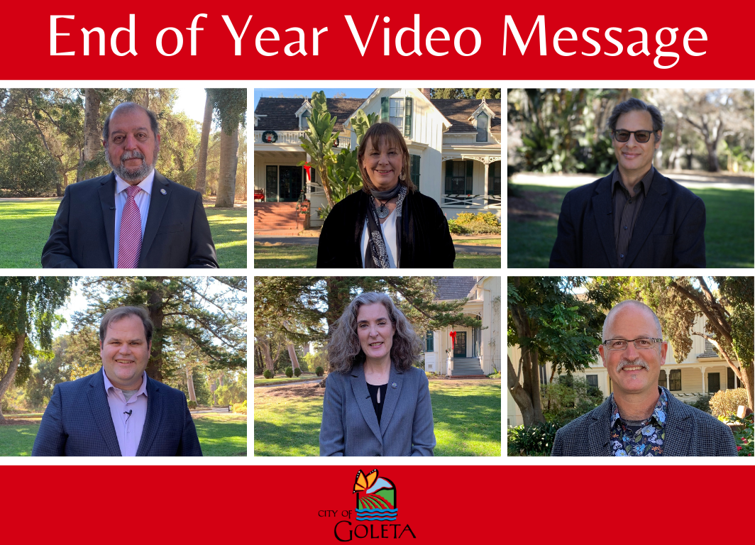 The City of Goleta invites you to watch our End of the Year Community Video Message. In this informative video, we reflect on this incredibly trying past year as a City, provide an update on the City’s finances and share some exciting things to look forward to as a City in 2021. We encourage you to take time out to hear directly from the Mayor, City Councilmembers and City Manager. While we know this is a difficult time, we hope you enjoy watching our video and we wish you a safe and peaceful holiday season.