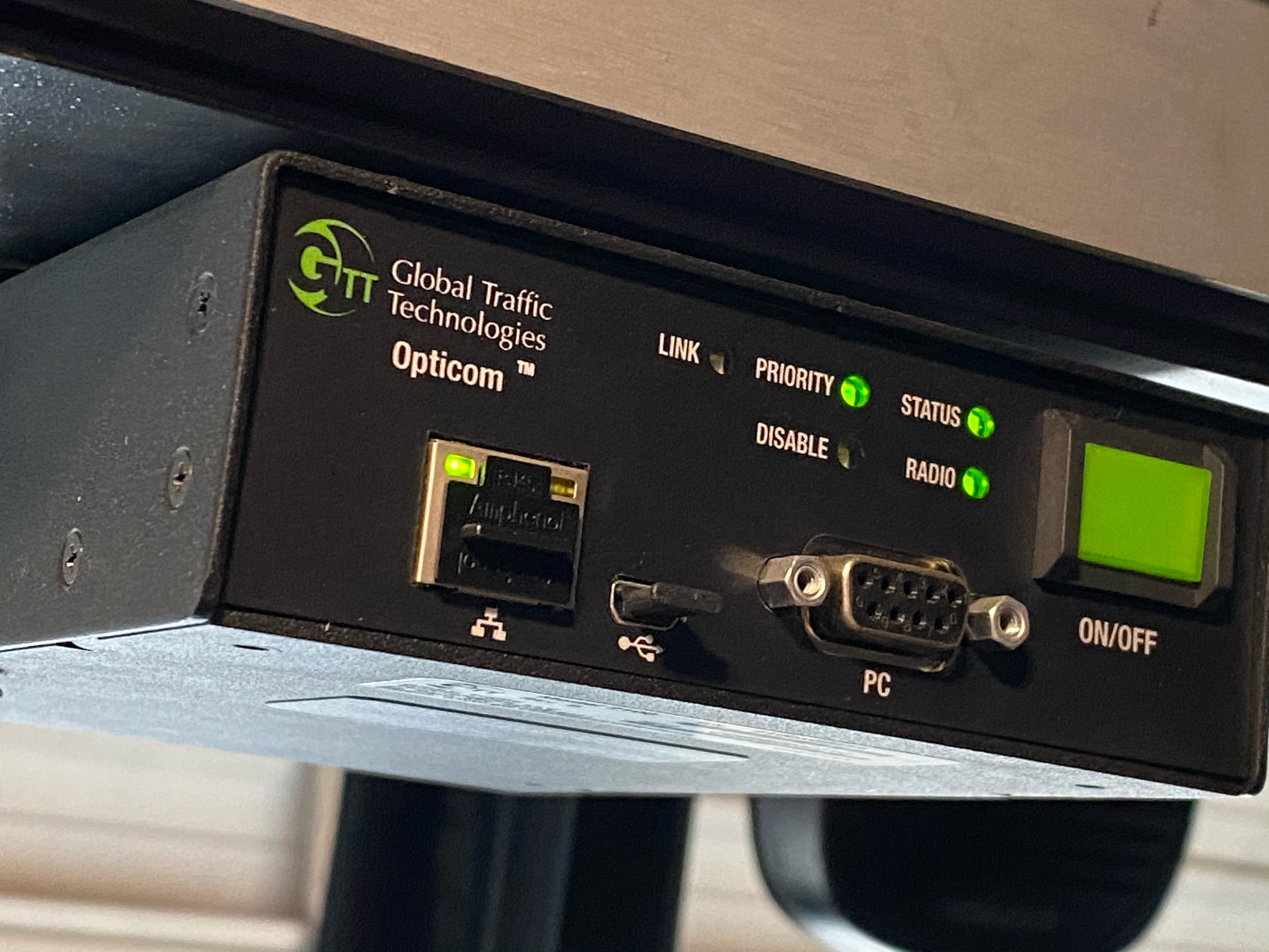 The Opticom system transmits a signal from the approaching emergency vehicle to the traffic light, prioritizing the green light and allowing the emergency vehicle to continue through the intersection. Fourteen Santa Barbara County Fire Department fire engines and two trucks have been outfitted with the emitting technology. The system has been installed at 14 Goleta intersections.