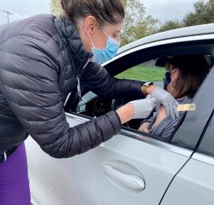 Pictured: Mayor Perotte getting her first COVID-19 vaccine shot