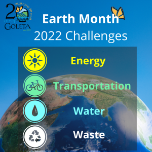 The City of Goleta has put together some Earth Month challenges to help residents reduce their impact on the environment. These challenges are for four main areas including Energy, Transportation, Water, and Waste.