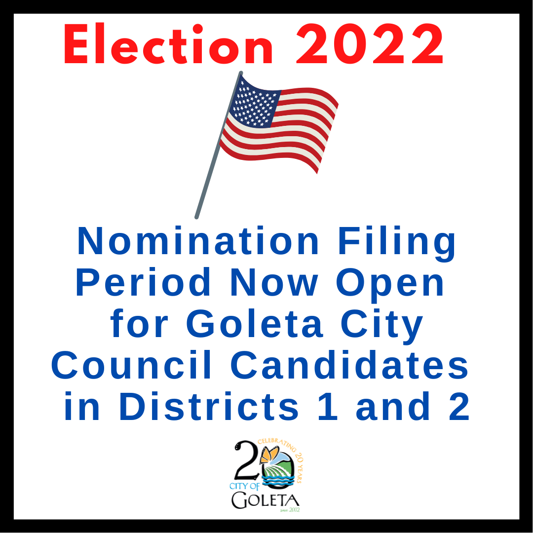 Filing Period_Instagram Published July 27, 2022 at 1080 × 1080 in Goleta City Council Candidate Nomination Filing Period Open for Districts 1 and 2 Image navigation ← Previous