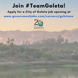 Have you ever thought of a career in local government? Are you looking for a rewarding job where you can give back to the community? If you answered yes to either of those questions, then check out the available jobs the City of Goleta is looking to fill at www.governmentjobs.com/careers/goletaca. We have close to 20 job openings throughout multiple departments including the newly posted Senior Manager Analyst – Purchasing & Procurement and the Senior Planner in our Advance Planning department. If you love Goleta as much as we do, we encourage you to apply!