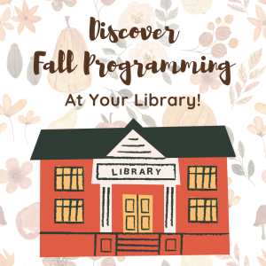 - Outdoor Book Sale – Join us for a book sale on 9/10/22 from 10:00 a.m. – 3:00 p.m. on the lawn in front of the library.