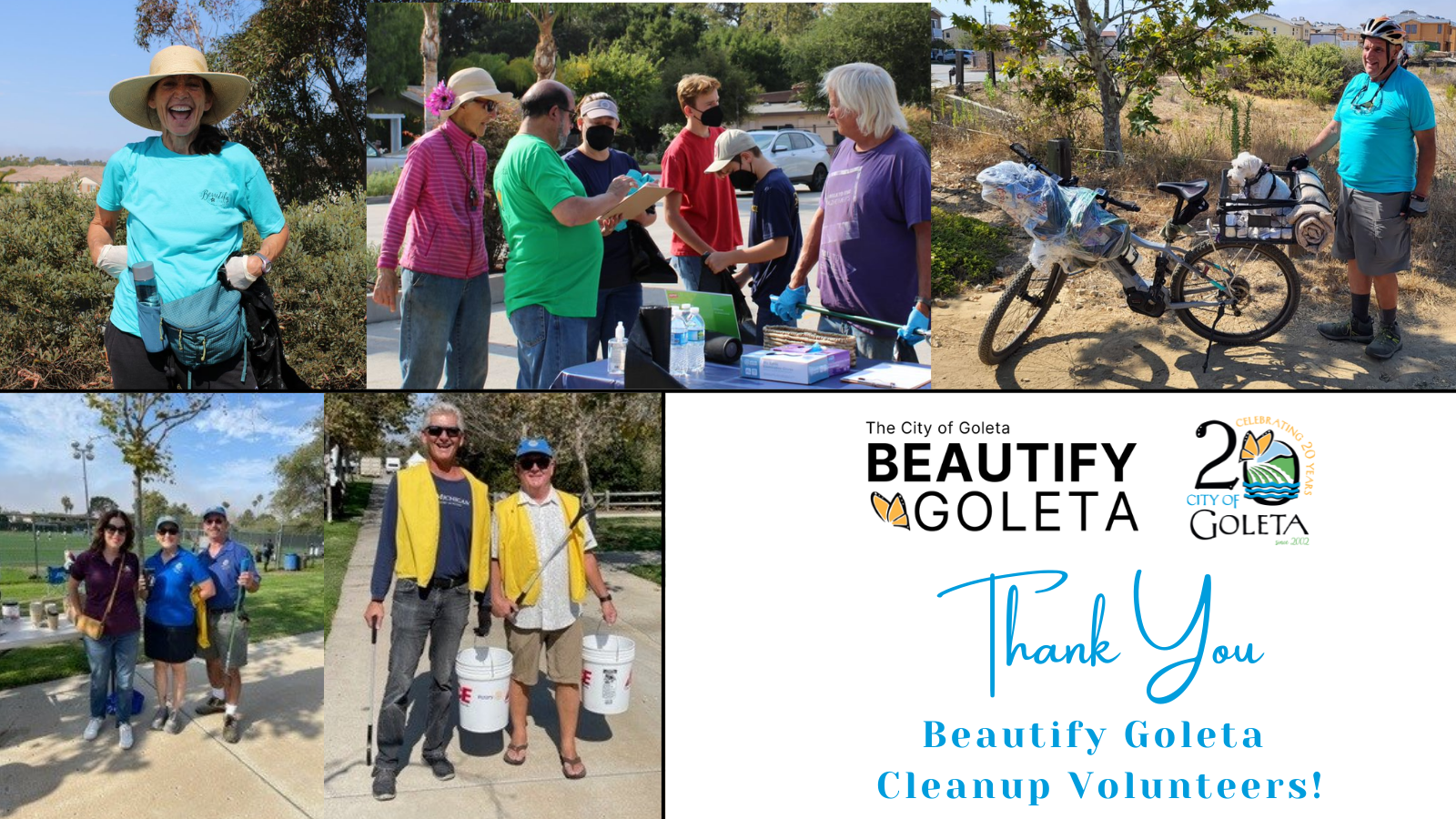The City of Goleta is pleased to announce its Beautify Goleta Community Cleanup event on July 30, 2022, was another huge success! Five community cleanup locations were attended by 80 volunteers who collected 734 pounds of trash to prevent it from polluting our neighborhoods, creeks, and ocean. In addition to trash collected, the Bulky Item Drop-off for Fairview/Kellogg Neighborhood Spotlight also collected 7,967 pounds of furniture, mattresses, and other items! Check out KEYT’s coverage of the event online.