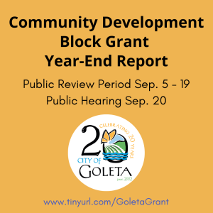 Every year the City of Goleta looks forward to helping those in our community via our Community Development Block Grant (CDBG) program. This past year, more than 2,000 people were assisted with CDBG funding. The City is required to submit a year-end report on its accomplishments called the Consolidated Annual Performance Evaluation Report (CAPER). The CAPER provides an assessment of the City’s performance in meeting housing and community development goals in the adopted 2021-2022 CDBG Action Plan. The draft CAPER can be viewed at https://tinyurl.com/yc82d828, for more information on the City’s grant programs go to: https://www.cityofgoleta.org/your-city/neighborhood-services/grants.