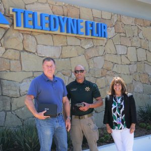 Recently, Training Bureau staff visited the Teledyne FLIR campus in Goleta where they presented the ALERRT training to their employees. At the conclusion of the training course at FLIR, the Sheriff’s Office was presented with a generous gift of two Scout III thermal monocular cameras which will be used in by patrol to help with searches for missing persons and wanted suspects. The Sheriff’s Office would like to thank FLIR for their generous donation and all our community partners who have invited us to train their staff members so that, together, we can keep Santa Barbara County safe.