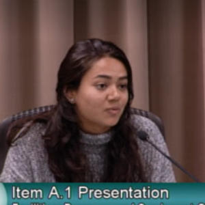 Pictured: Parks and Recreation Student Commissioner Nora Kelly participating in a meeting; she served from July 2018 – February 2020.