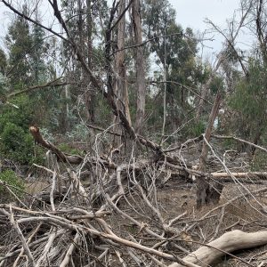 Scientists guiding work to improve monarch butterfly habitat at Ellwood Mesa concluded the removal of dead downed wood and dead standing trees benefits monarch butterfly habitat and the forest. Specifically, the accumulation of bark and dead wood on the ground creates a major fire hazard to monarch habitats. Ignition from human sources can feed on ground debris and quickly escalate into a catastrophic fire event. This risk can be managed by reducing fuel load through the removal of dead branches, trunks, and highly flammable vegetation that can create fire ladders into the forest crown. The project will help to protect life, property, and natural resources including monarch butterfly habitat.