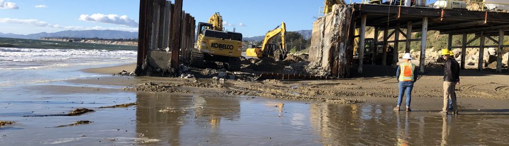 Great progress is being made on the California State Lands Commission’s oil and gas decommissioning project taking place near Haskell’s Beach. The crews have removed the huge concrete caisson walls on PRC 421-1 and will start removing the second caisson walls on PRC-421-2 soon. Once both caisson walls have been removed, crews will start dismantling the piers. The caisson wall removal is a huge milestone in this important oil and gas decommissioning and beach restoration project along a pristinely beautiful stretch of Goleta Coastline. The entire project is on track to finish by 2023.