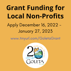 Don’t miss out on this opportunity to help your non-profit or community group. Visit https://www.cityofgoleta.org/your-city/neighborhood-services/grants for additional information on both grant programs or contact Shanna Dawson in the City of Goleta Neighborhood Services Department at 805-690-5126 or sdawson@cityofgoleta.org.