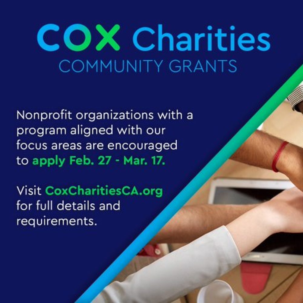 To apply, visit www.coxcharitiesca.org/communitygrants. Recipients will be announced in May.