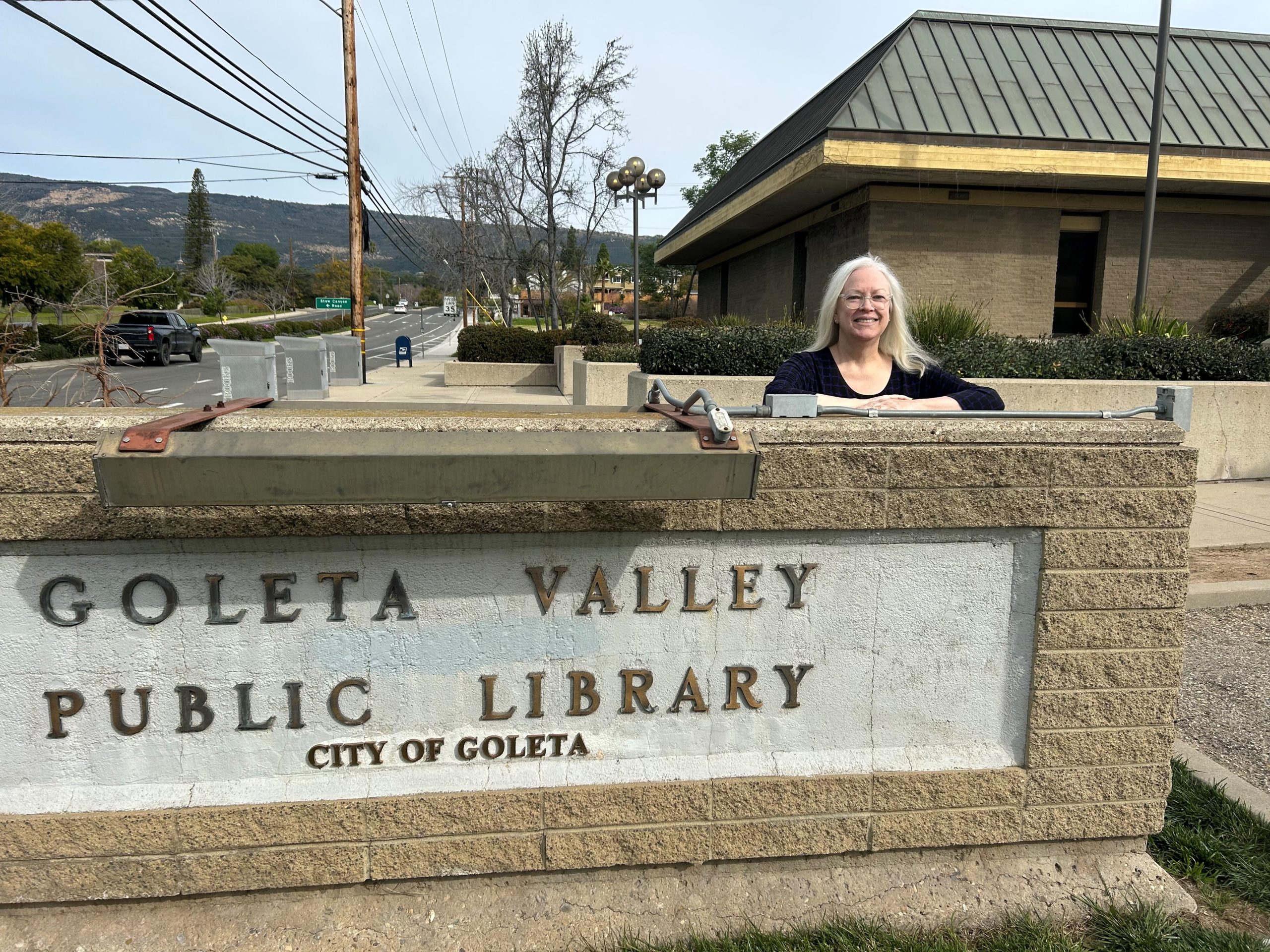 Allison Gray behind GVL Sign Published March 28, 2023 at 2560 × 1920 in Goleta Valley Library’s First Director Retires After Long Career Image navigation Next →