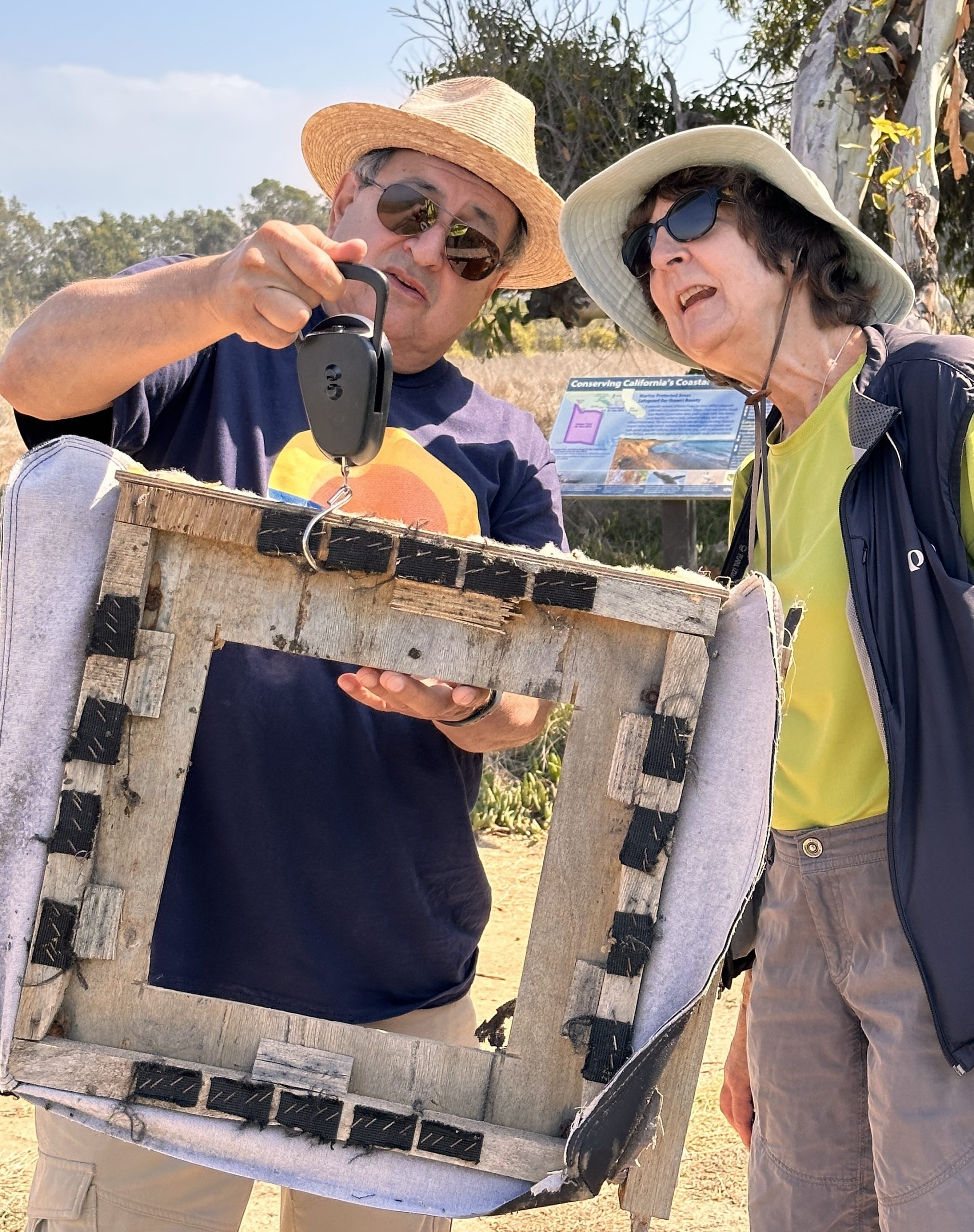 Volunteer Melody weighs trash collected with Ellwood site captain Al Souma.