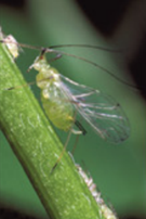 Aphids are 1/16 to 1/8th inch in length and pear-shaped with long legs and antennae. They can be green, yellow, red or black in color. Some aphids have white or gray waxy covering. Aphids are found on new buds, leaves, stems, and undersides of leaves.