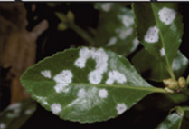 Powdery mildew is a fungal disease spread by airborne spores. It appears as a white, powdery growth on green parts of plant or as yellow patches with no powdery growth on artichokes, onions, peppers, and tomatoes.