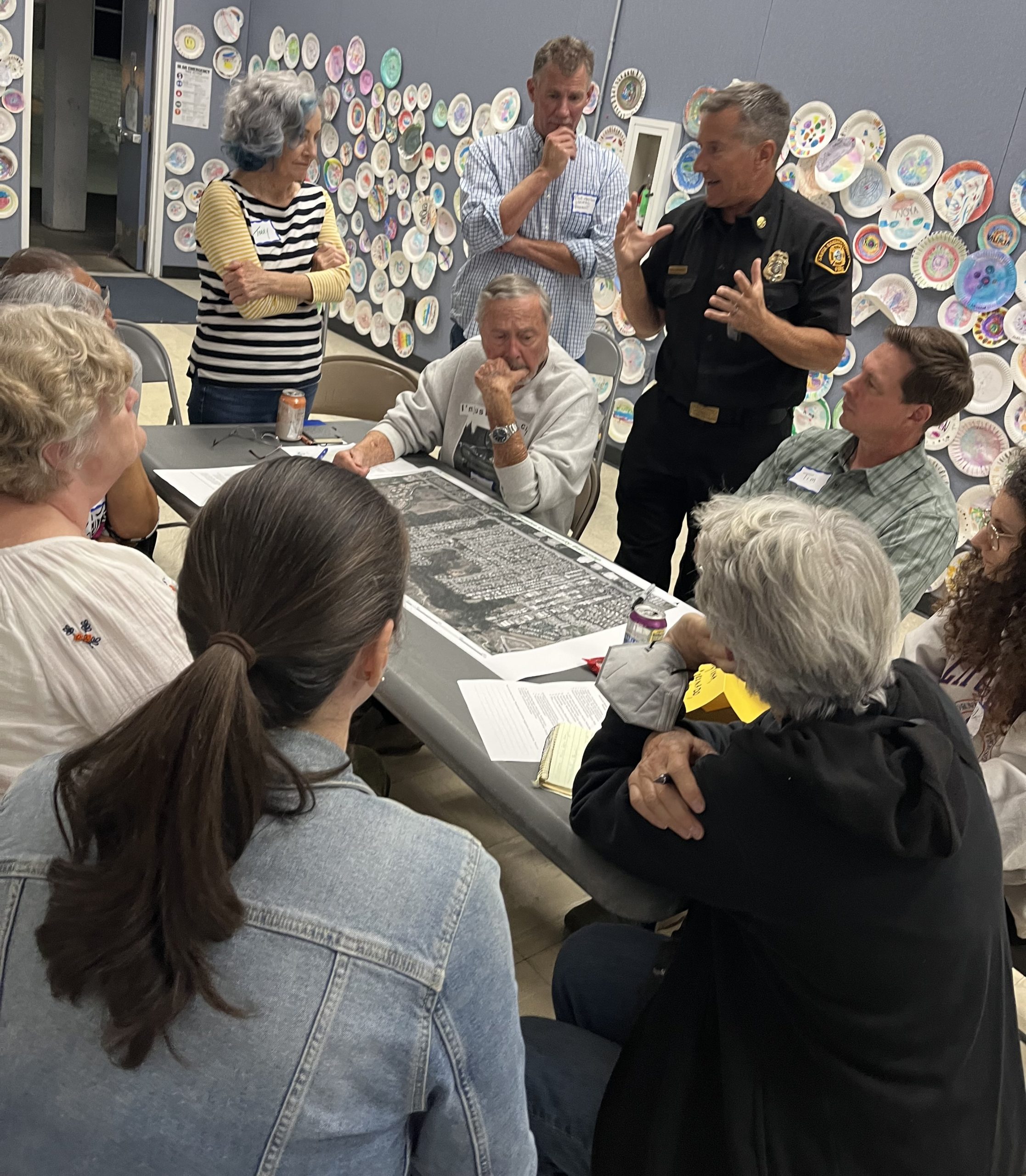 The meeting was hosted by the City of Goleta and the Santa Barbara County Fire Safe Council. Goleta City Councilmember Stuart Kasdin, City of Goleta Parks and Open Space Manager George Thomson, Santa Barbara County Fire Marshal Rob Hazard, and Fire Safe Council staff were among the speakers. Santa Barbara County 3rd District Supervisor Joan Hartmann’s Chief of Staff was also in attendance.