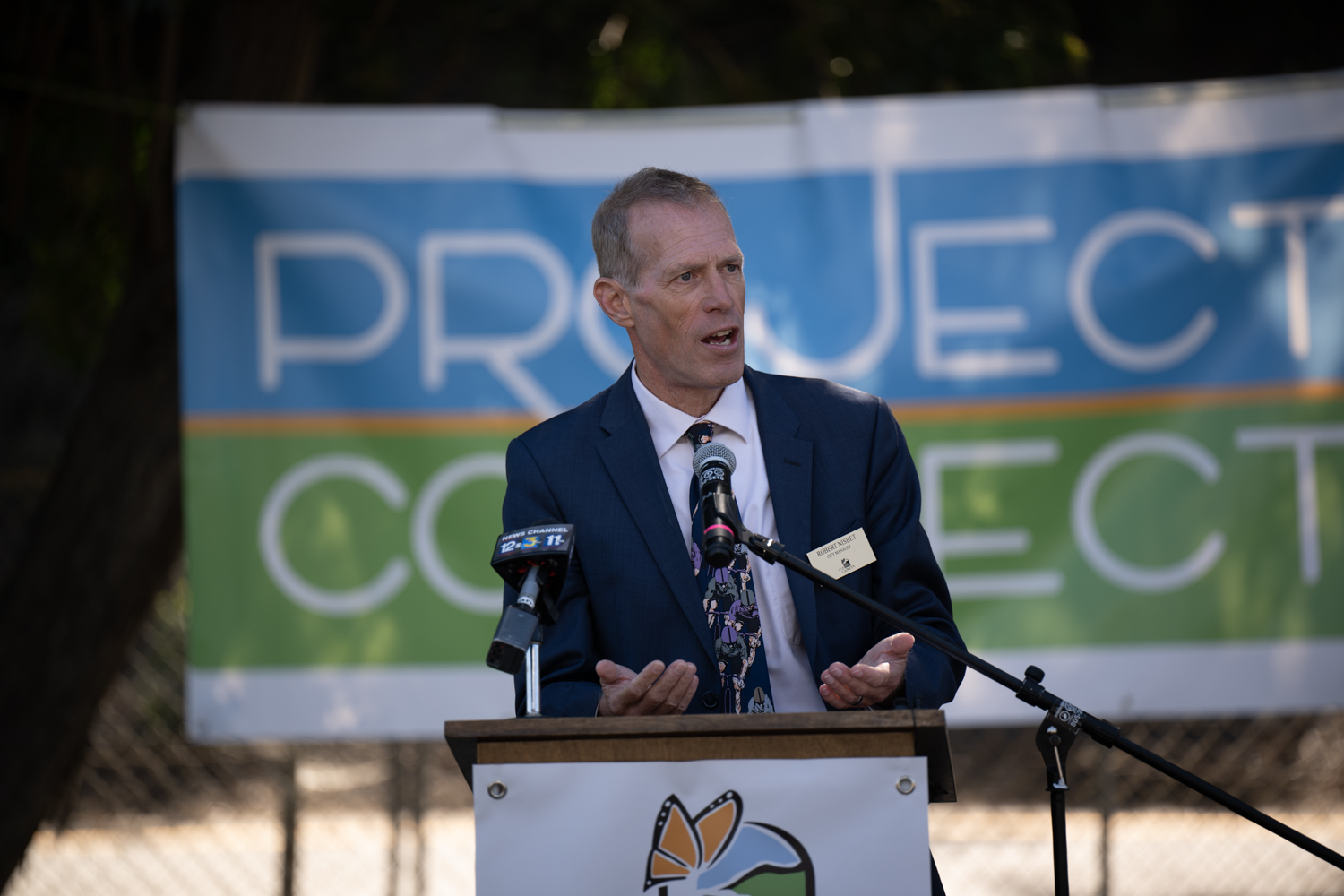 Project Connect is officially off and running following a groundbreaking ceremony held on March 18th in Old Town Goleta. The milestone event was held near the intersection of Hollister Avenue and the southbound Highway 217 onramp, a location that will be impacted by the future realignment of Hollister Avenue. The groundbreaking ceremony brought together local leaders, stakeholders and community members for this historic moment. Watch a video recap here. Project Connect is the largest capital improvement project in the history of the City and will enhance pedestrian access and safety, improve road conditions, and build critical linkage throughout Goleta while increasing stormwater flow capacity in San Jose Creek under Hollister Bridge.