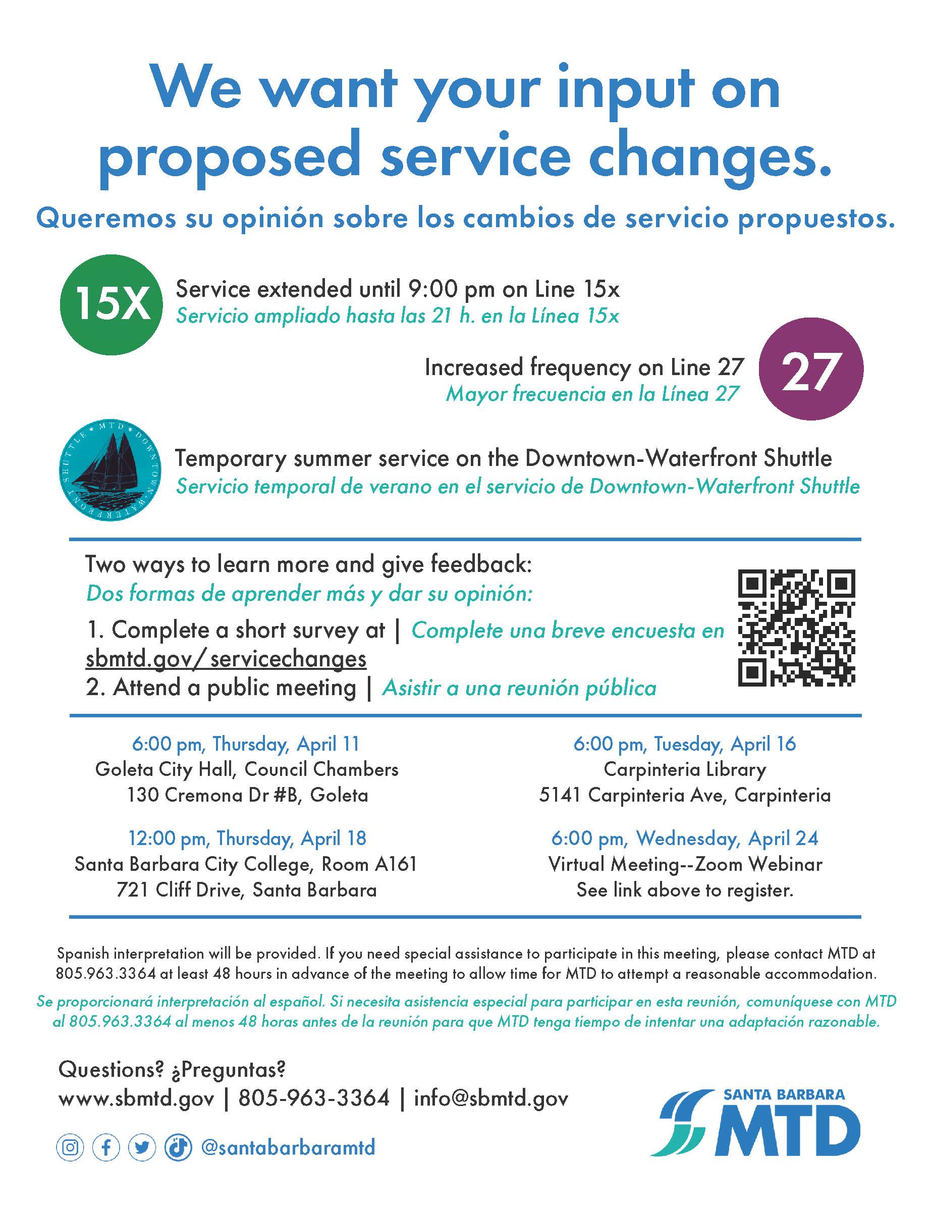 SBMTD CommunityMeetings Flyer 2024 Published March 28, 2024 at 1845 × 2387 in MTD to Solicit Input on Proposed Service Changes Image navigation ← Previous