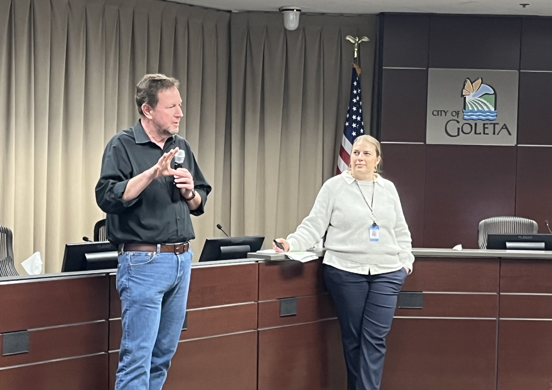 Charlie presenting at LEAD Goleta (pictured with Autumn Glaeser, Principal Civil Engineer)