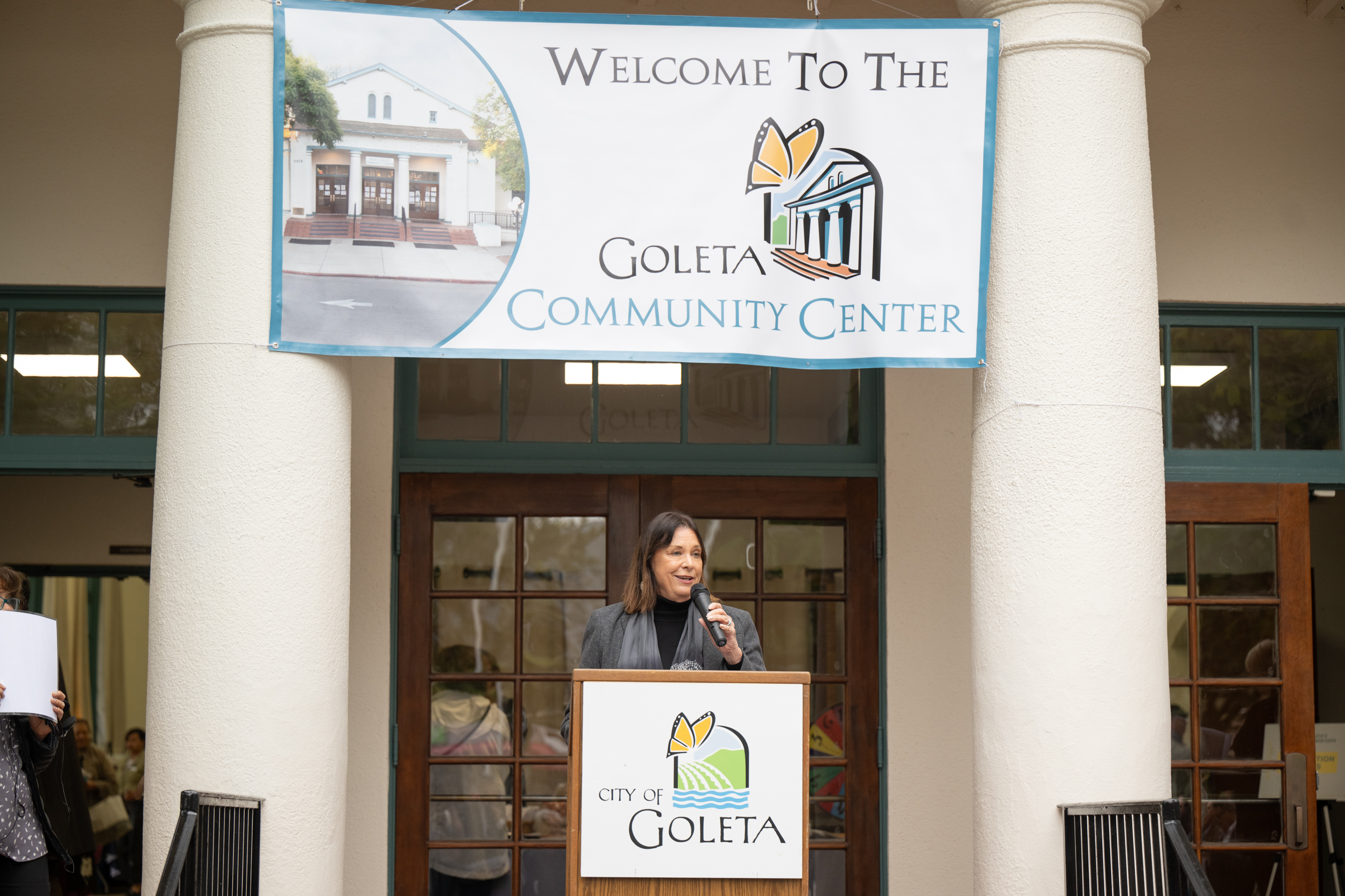 City of Goleta Mayor Paula Perotte was the first to give her remarks and said, “While the GCC is located in the heart of Goleta, here in Old Town, it’s important to note that this facility is here to serve people throughout Goleta. We know this is an important gathering spot and we are committed to making it a vital hub for residents to meet, learn and enjoy.”