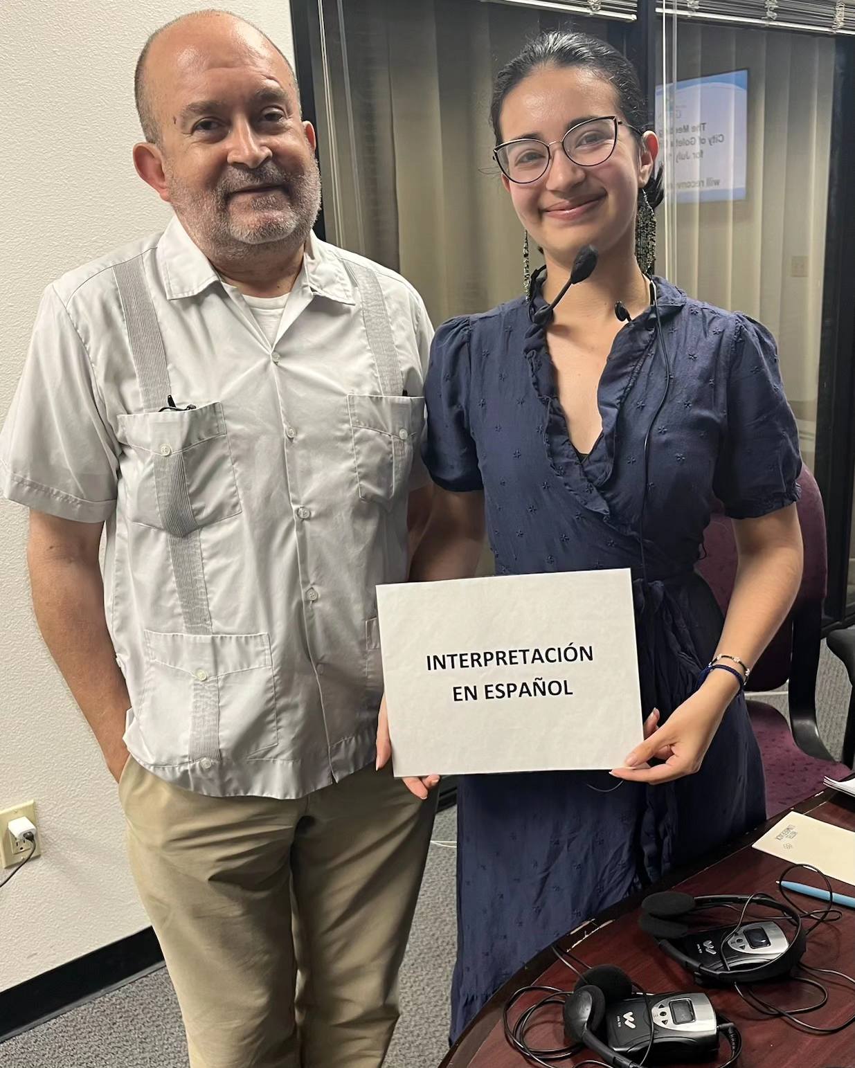 Hugo and Regina with Sign Published July 29, 2024 at 1235 × 1543 in Spanish Interpretation at City Council Image navigation Next →