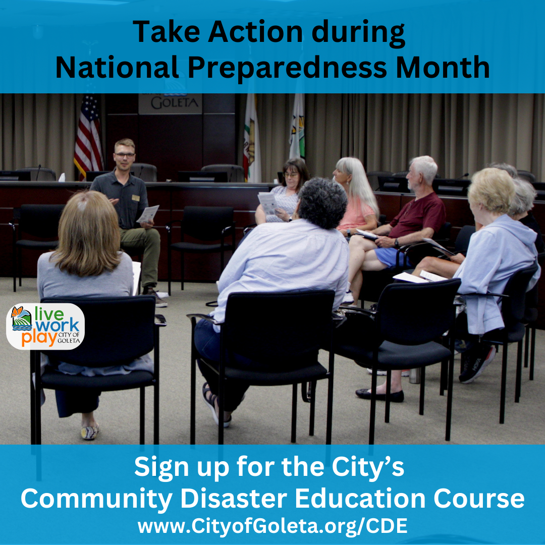 Should you want help in making a family plan, all Goleta residents can request a free, one-hour Community Disaster Education (CDE) course (for groups of 10 or more). A CDE introduces the basics of disaster preparedness to anyone and is available in English and Spanish. To learn more about this course watch a short promo video here. Complete an interest form at www.CityofGoleta.org/CDE.