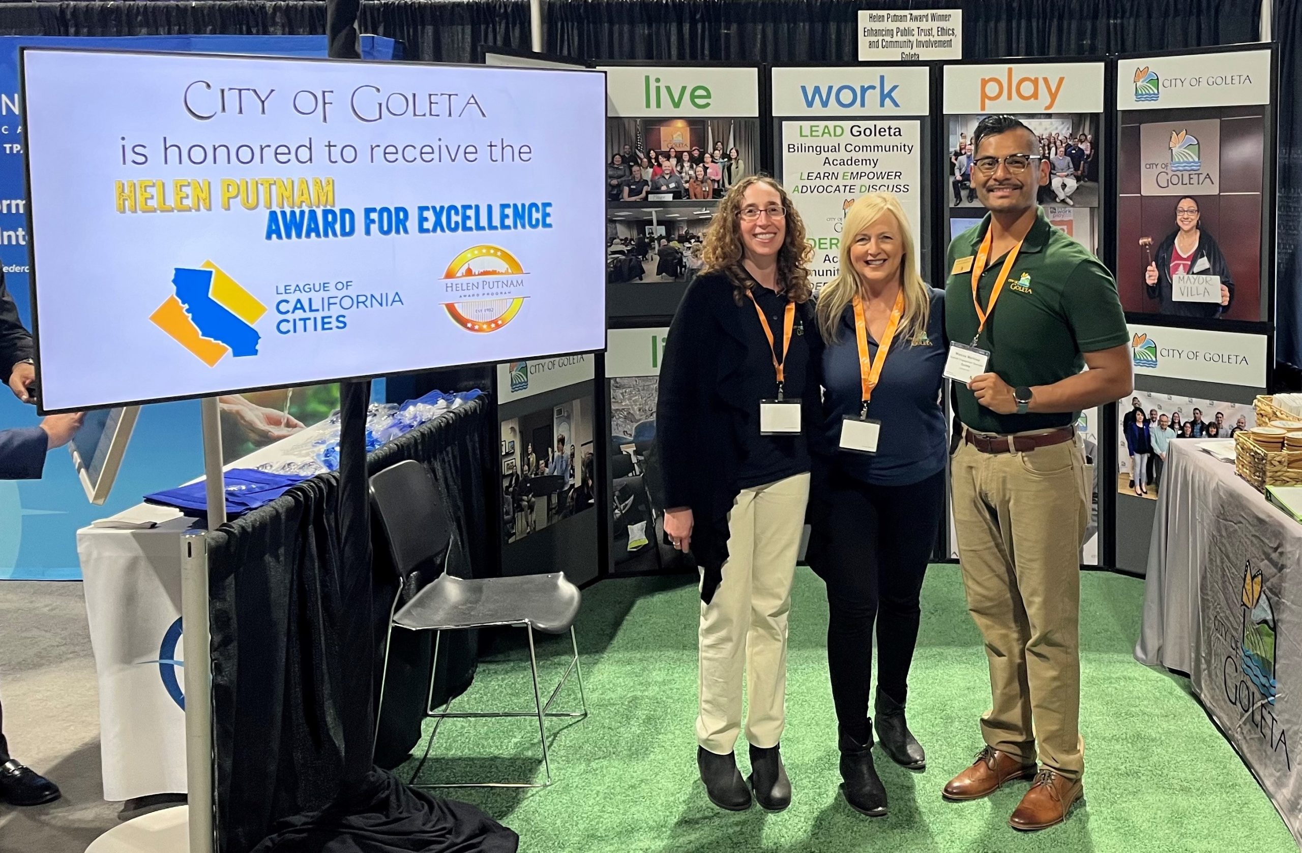 Established in 1982, the Helen Putnam Award for Excellence, given annually in 12 categories, recognizes outstanding achievements made by California’s 483 cities. The purpose of the award is to promote innovative solutions by city governments. This is the third Helen Putnam Award for the City of Goleta. The first one was awarded in 2005 for the City’s role in preserving the Ellwood Mesa and the second one in 2014 for an Emergency Preparedness Program.