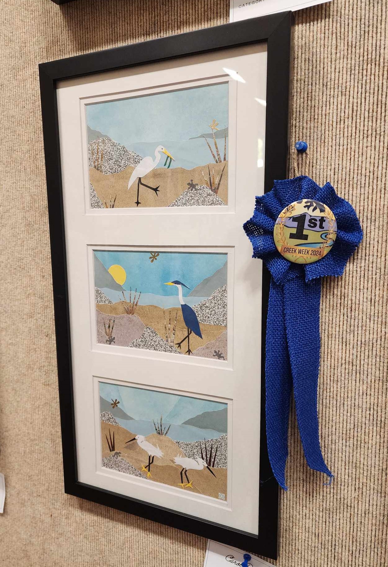 Kelly Hildner said, “It was a true honor to serve as a juror for the Creek Week Art Contest. The creativity and quality of the artwork were exceptional, and there were so many deserving pieces that I wished I could have given more awards. Every artist should feel proud to have their work showcased in this impressive exhibition highlighting Goleta the Goodland.”