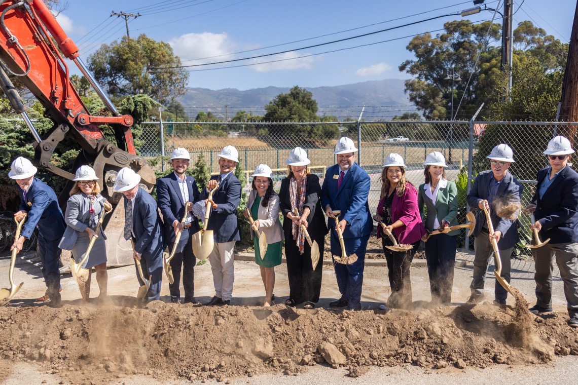 Goleta Train Depot Ceremonial turning of the dirt to begin construction left to right: City Manager Robert Nisbet, SBCAG Executive Director Marjie KIRN, Chief Deputy Secretary for Rail and Transit at California State Transportation Agency Chad Edison, Assemblymember Gregg Hart (Gunnar Langenhuizen), County Supervisor and SBCAG’s Representative on LOSSAN Board of Directors Das Williams, Senator Monique Limón, Mayor Paula Perotte, Councilmember James Kyriaco, Mayor Pro Tempore Luz Reyes- Martín, County Supervisor Joan Hartmann, Councilmember Kyle Richards, and Councilmember Stuart Kasdin