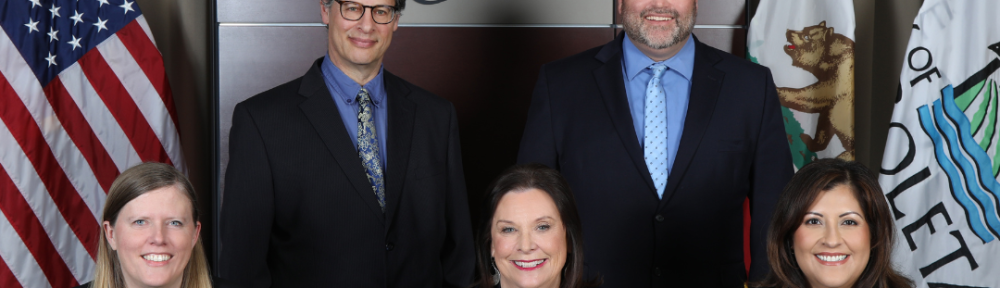 Goleta City Council (pictured left-to-right): Mayor Pro Tempore Stuart Kasdin (District 4), Councilmember Luz Reyes-Martín (District 1), Mayor Paula Perotte, Councilmember Jennifer Smith (District 3), and Councilmember James Kyriaco (District 2)