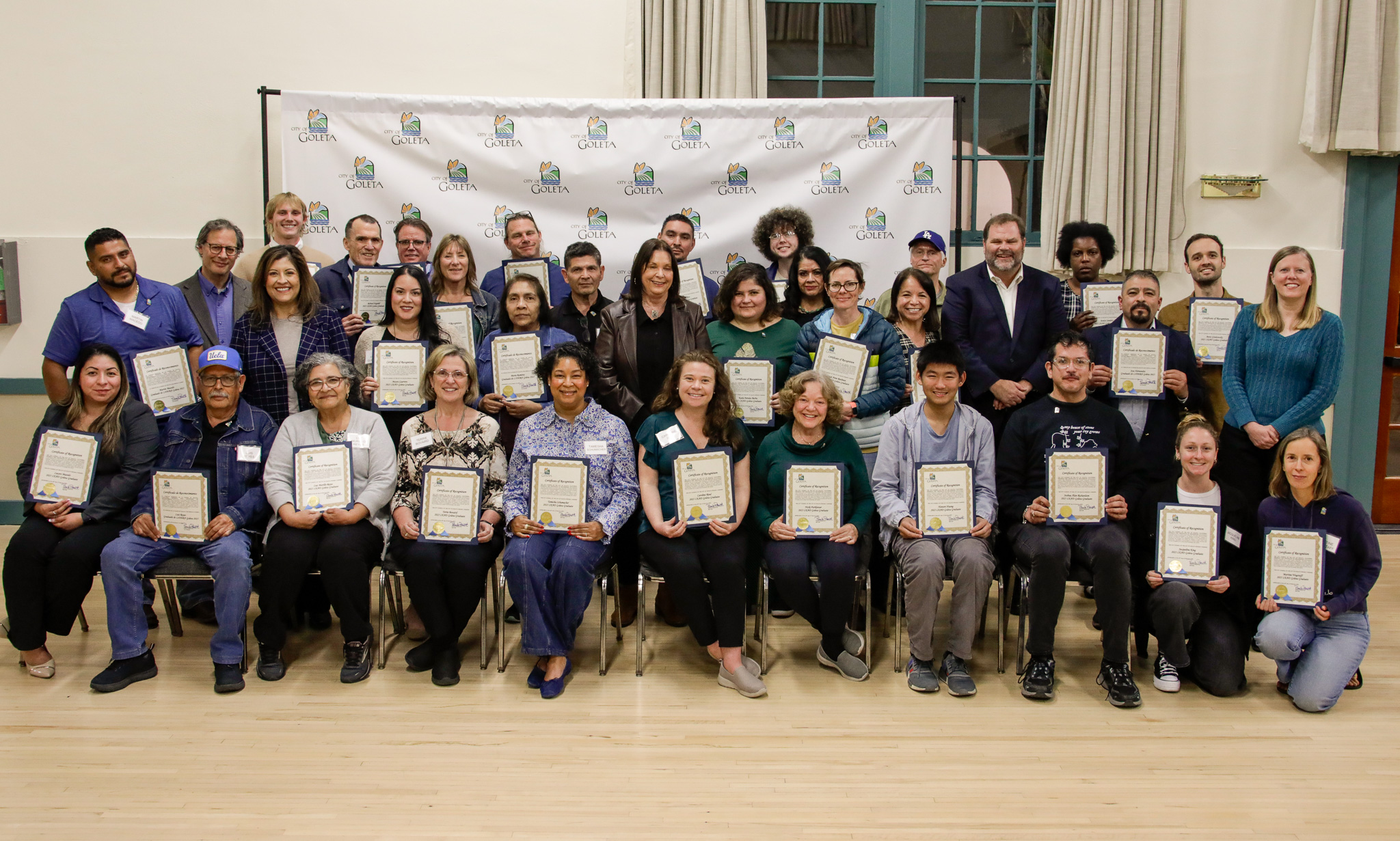 Congratulations to the 34 participants who graduated from the LEAD Goleta Bilingual Community Academy on February 20, 2025. This is the largest class to graduate in the program’s 5-year history and the third bilingual class with Spanish interpretation and translated materials. Former LEAD Goleta graduates, family and friends of the current class, City staff and the entire Goleta City Council gathered at the Goleta Community Center to applaud the group as each walked across the stage and received a Certificate of Completion and a City of Goleta pin. An ice cream social and sparkling apple cider toast followed the ceremony. Watch a video recap of the program here.