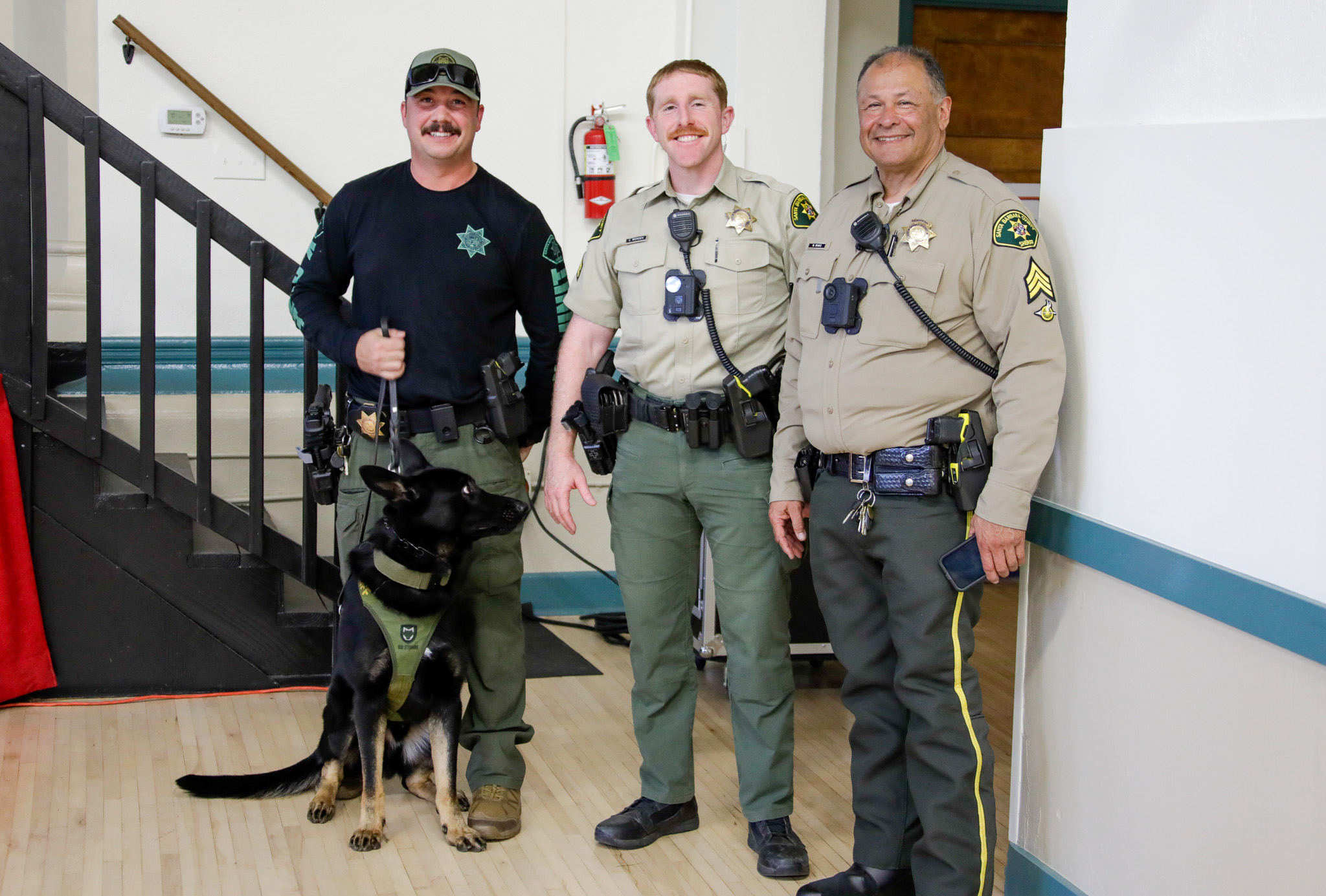 Goleta Police & K-9 (pictured left-to-right: K-9 Team Deputy James Carovano and Obi, Community Resource Deputy Connor Worden and Sgt. Noel Rivas)