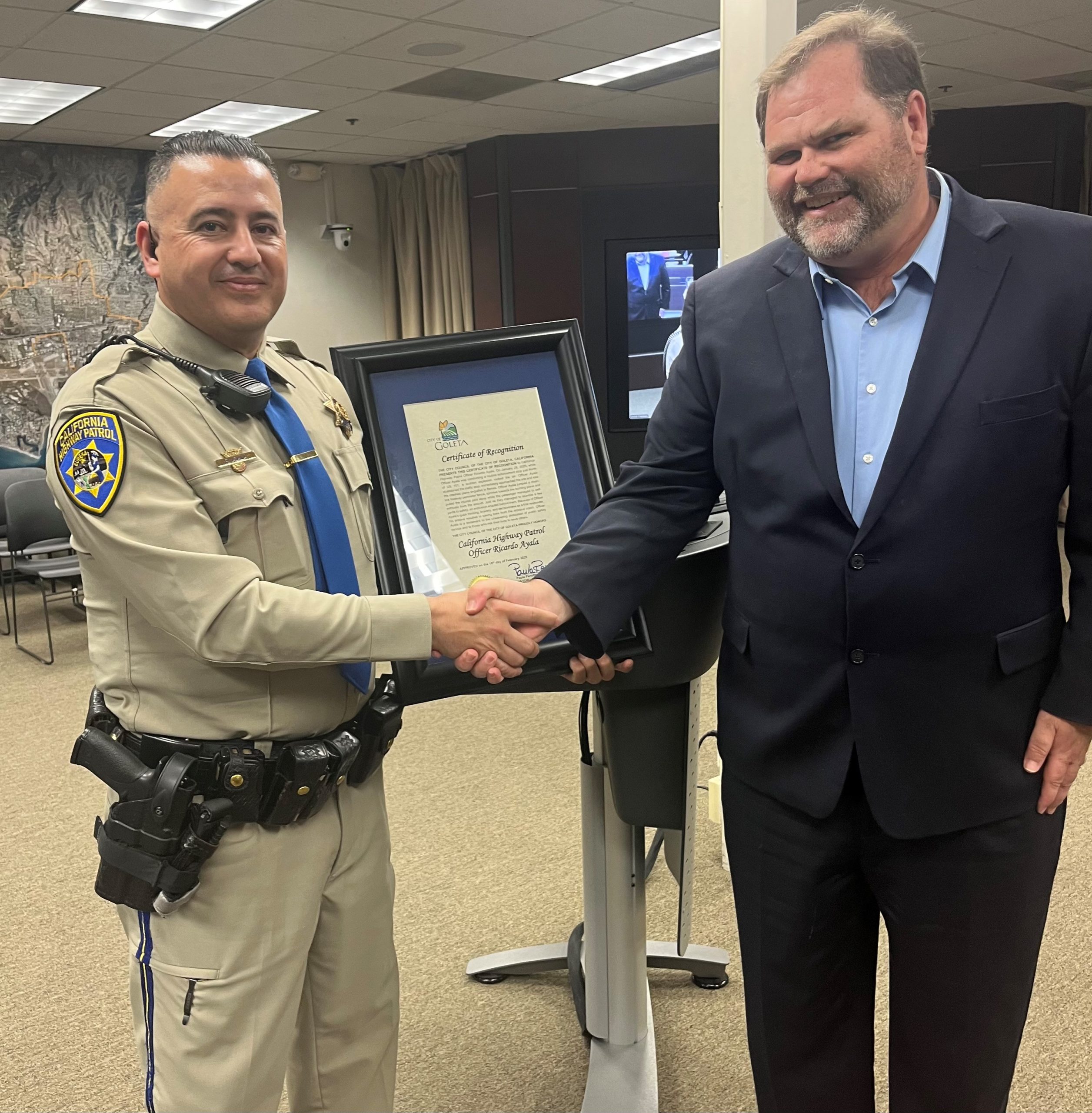 CHP Officer Ayala with Kyriaco Published March 3, 2025 at 2512 × 2560 in CHP Officer Ayala Recognized for Heroic Efforts Image navigation Next →