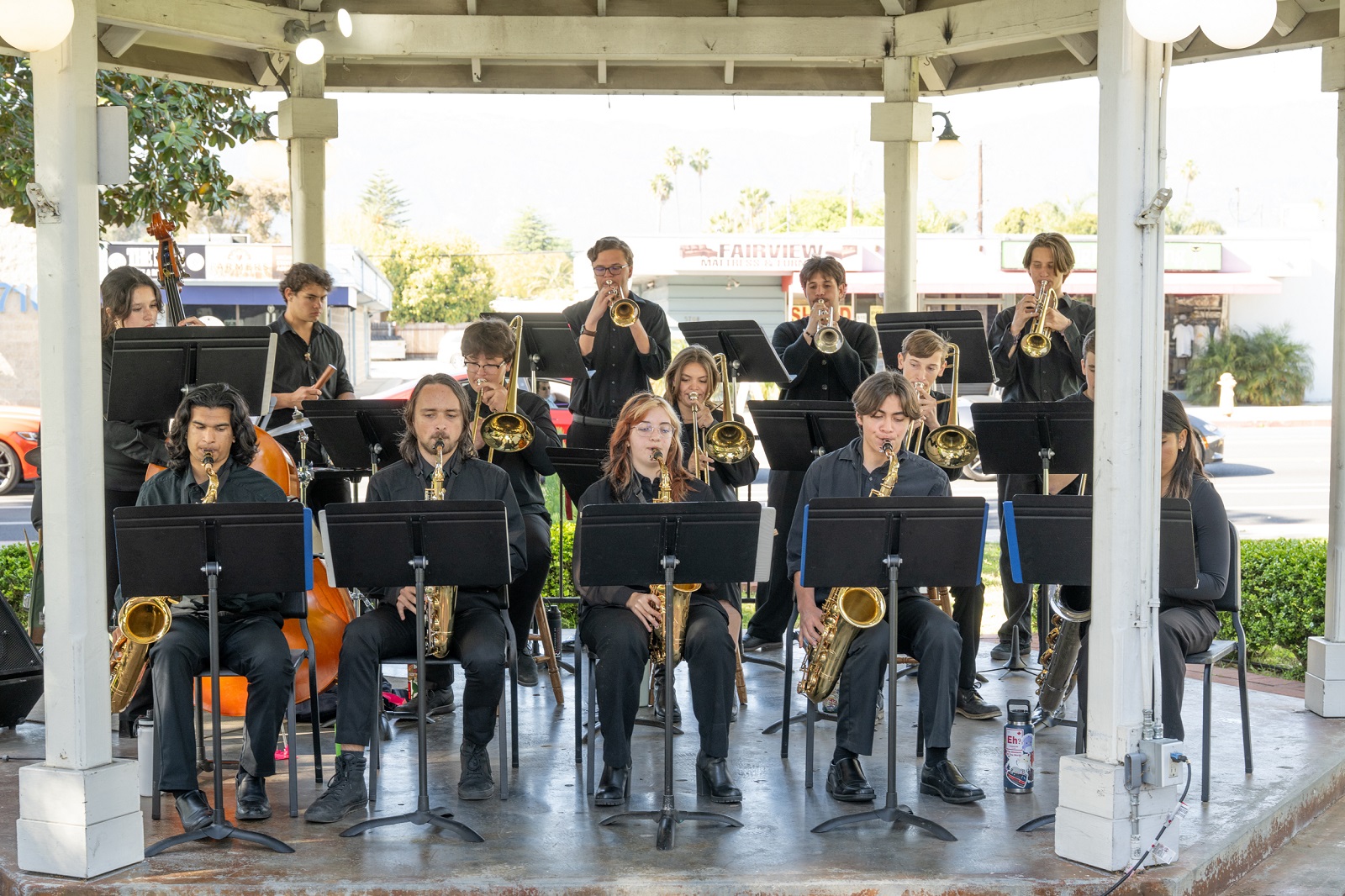 Dos Pueblos High School Jazz Band performing in the gazebo at the Goleta Community Center