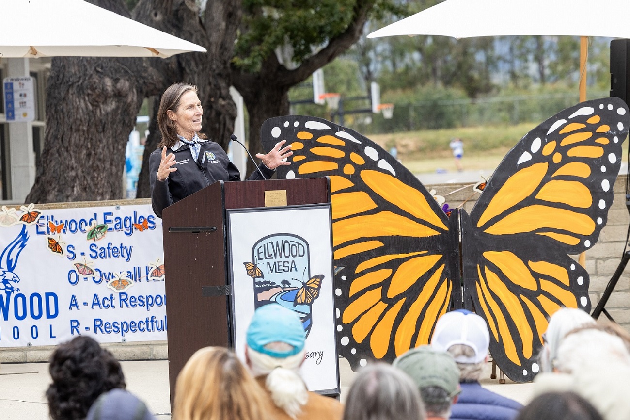 Santa Barbara County 3rd District Supervisor Joan Hartmann asked attendees to reflect on their contributions to Ellwood’s story. She said, “Way back then, did you write a letter, make a call, speak at a meeting? Bring your kids here, hoping they grow up loving this land? Do you stop to notice a bloom, a monarch, a hummingbird nest, and act just because you love this place? If so, this moment, this celebration, this day, is for you.”