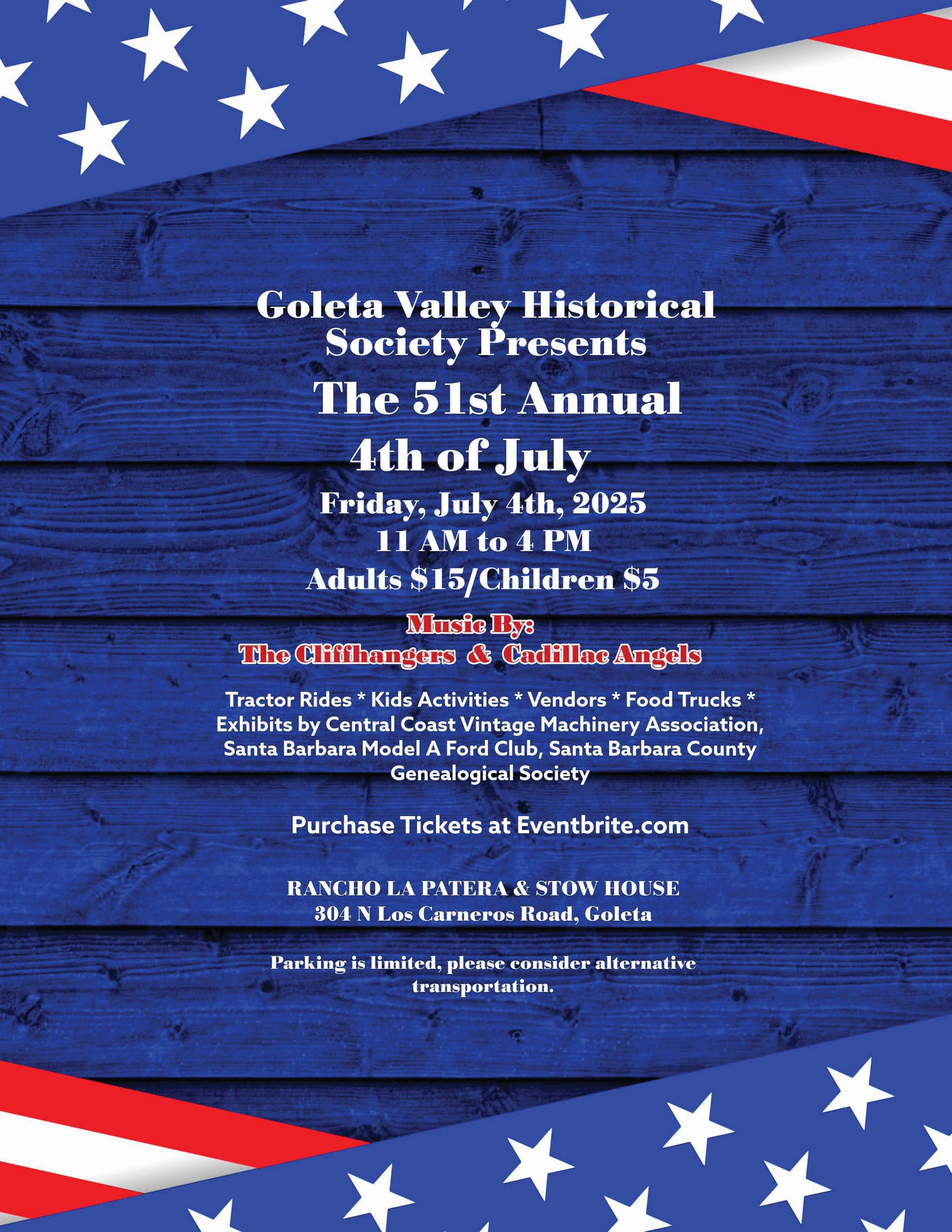 Purchase tickets in advance or at the door. More info: https://goletahistory.org/old-fashioned-4th-july/.