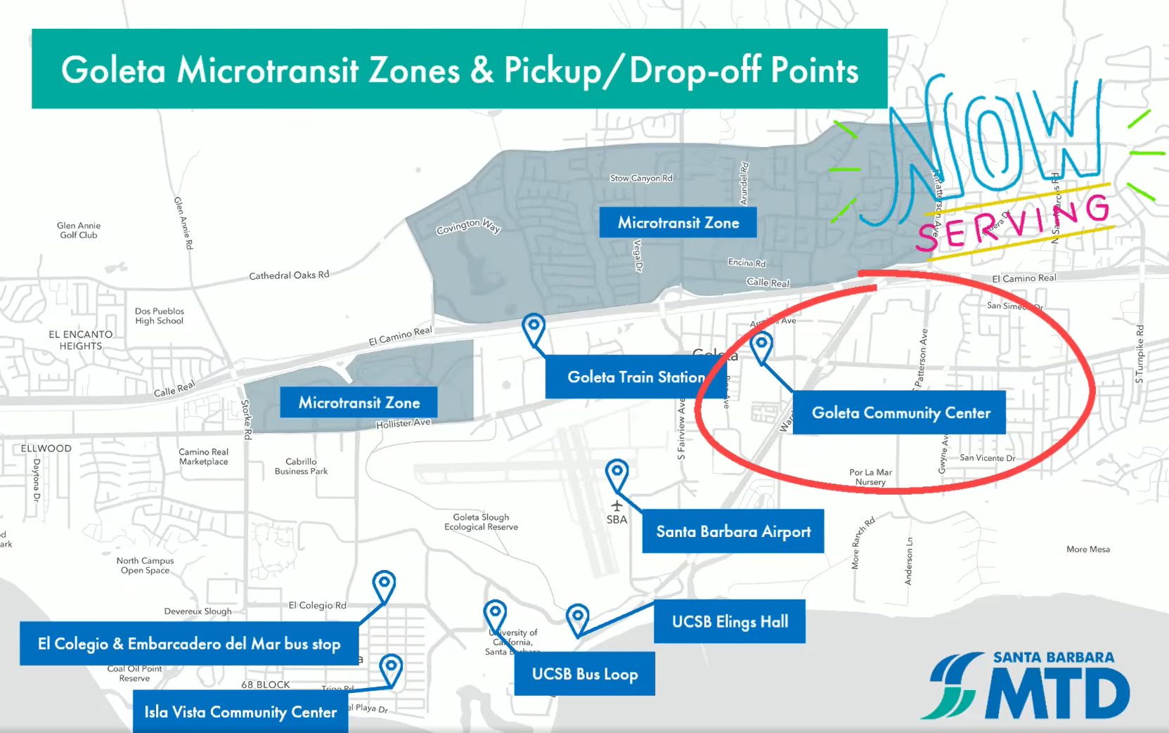 After launching a new on-demand microtransit service known as The Wave in an area of Goleta and Isla Vista in late April, Santa Barbara MTD has added a new pickup and drop-off point at the Goleta Community Center.