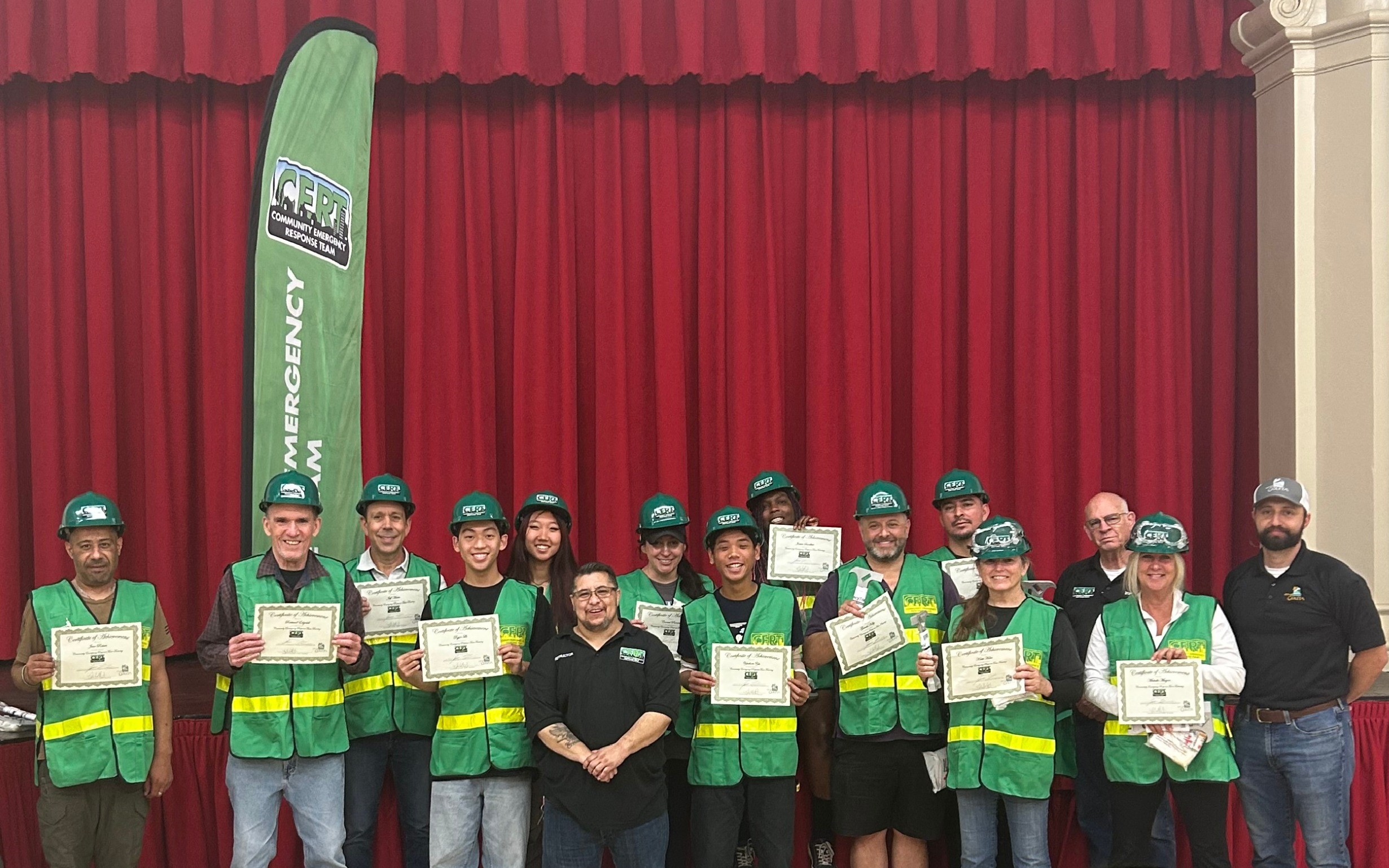 - Community Emergency Response Team (CERT) Training is a 20-24 hour course that teaches residents how to work together following a disaster. CERT is a high demand program offered nationwide that is designed to empower residents with essential skills and knowledge