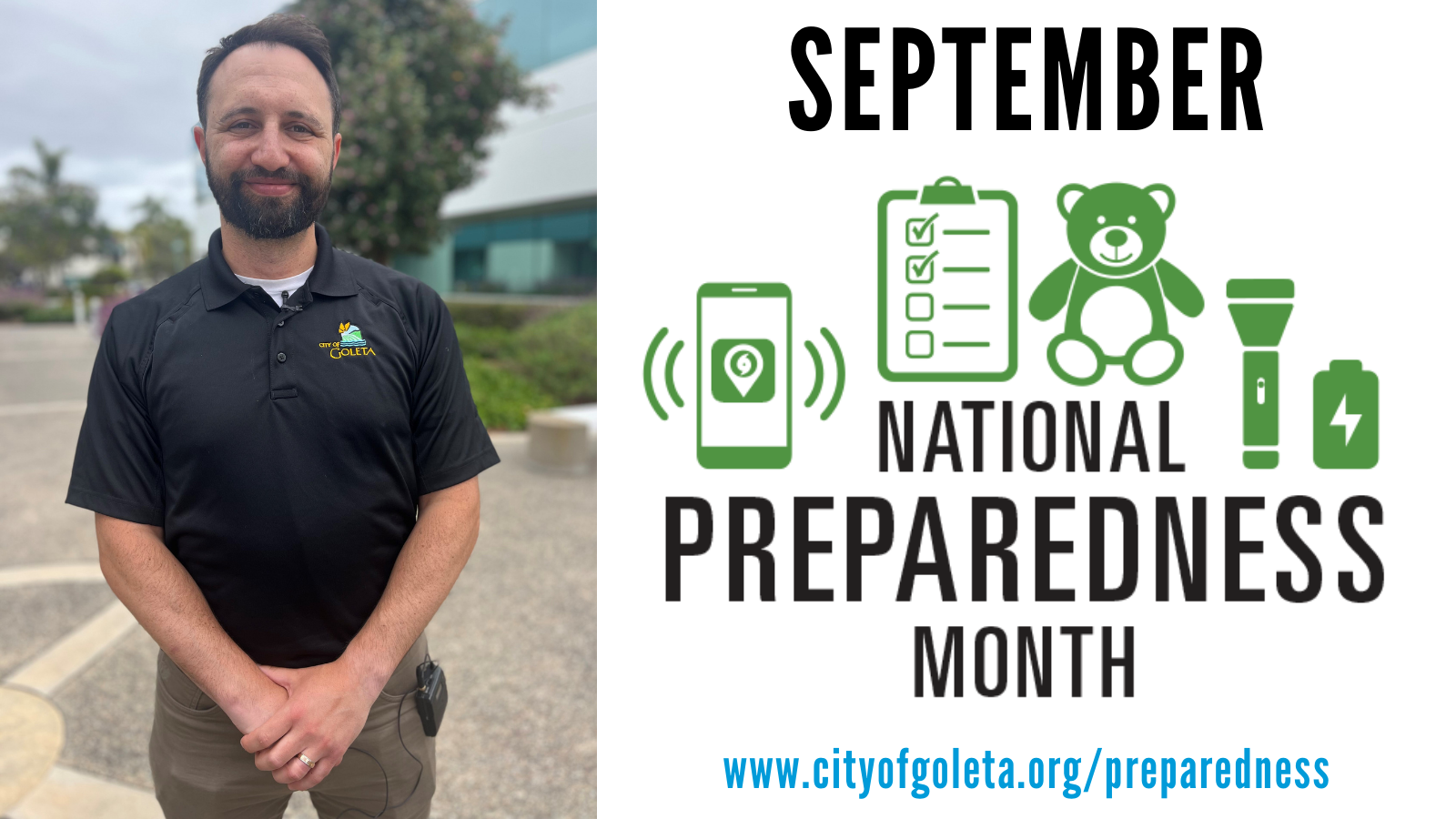 September is National Preparedness Month, the perfect time to do a few basic things NOW that can make all the difference LATER when an emergency happens. The City of Goleta has several new videos in English and Spanish to outline steps you can take BEFORE a disaster strikes and how to get involved in emergency preparedness in Goleta. Watch the videos in English with the City’s Emergency Services Coordinator Jason Levy and in Spanish with Emergency Services Program Technician Ana Sofia Aguilar Encinas.