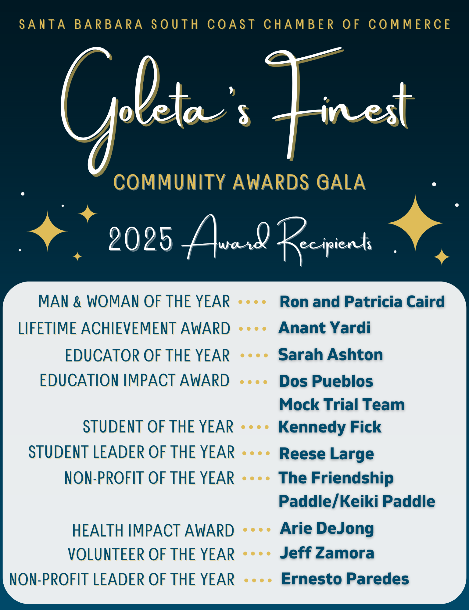 The 2025 Goleta’s Finest Award Recipients are: